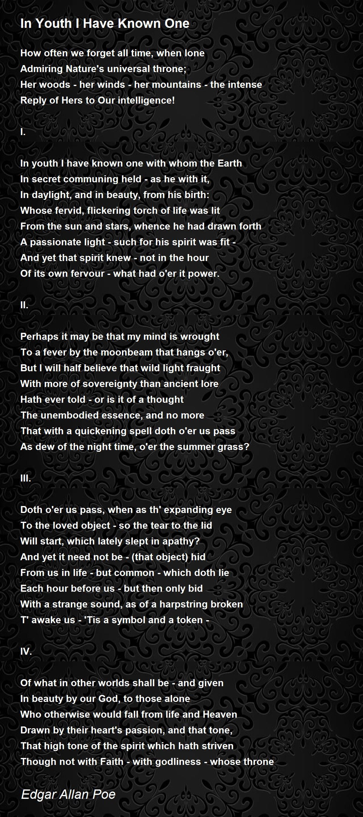 In Youth I Have Known One Poem By Edgar Allan Poe - Poem Hunter