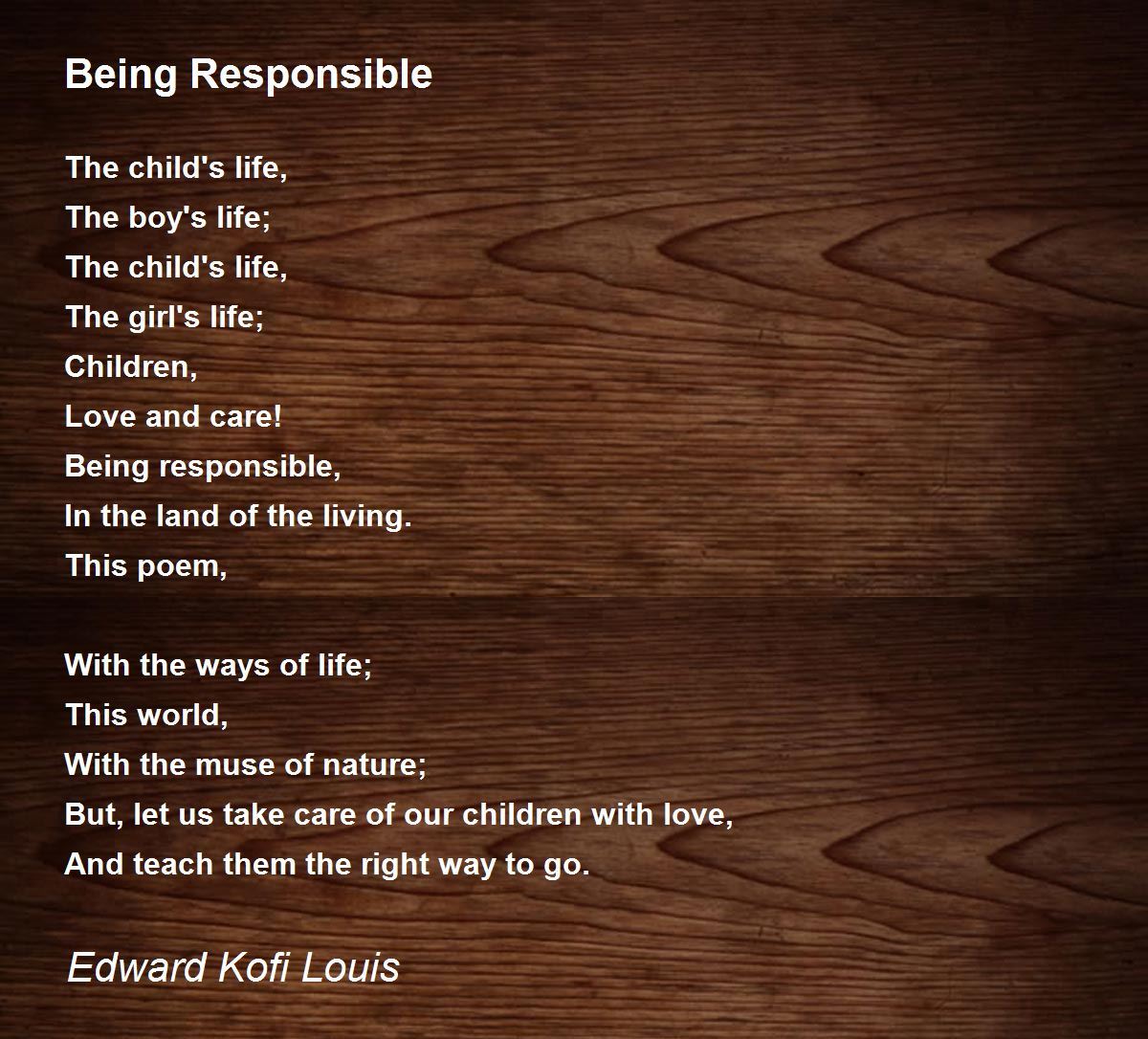 Being Responsible By Edward Kofi Louis - Being Responsible Poem