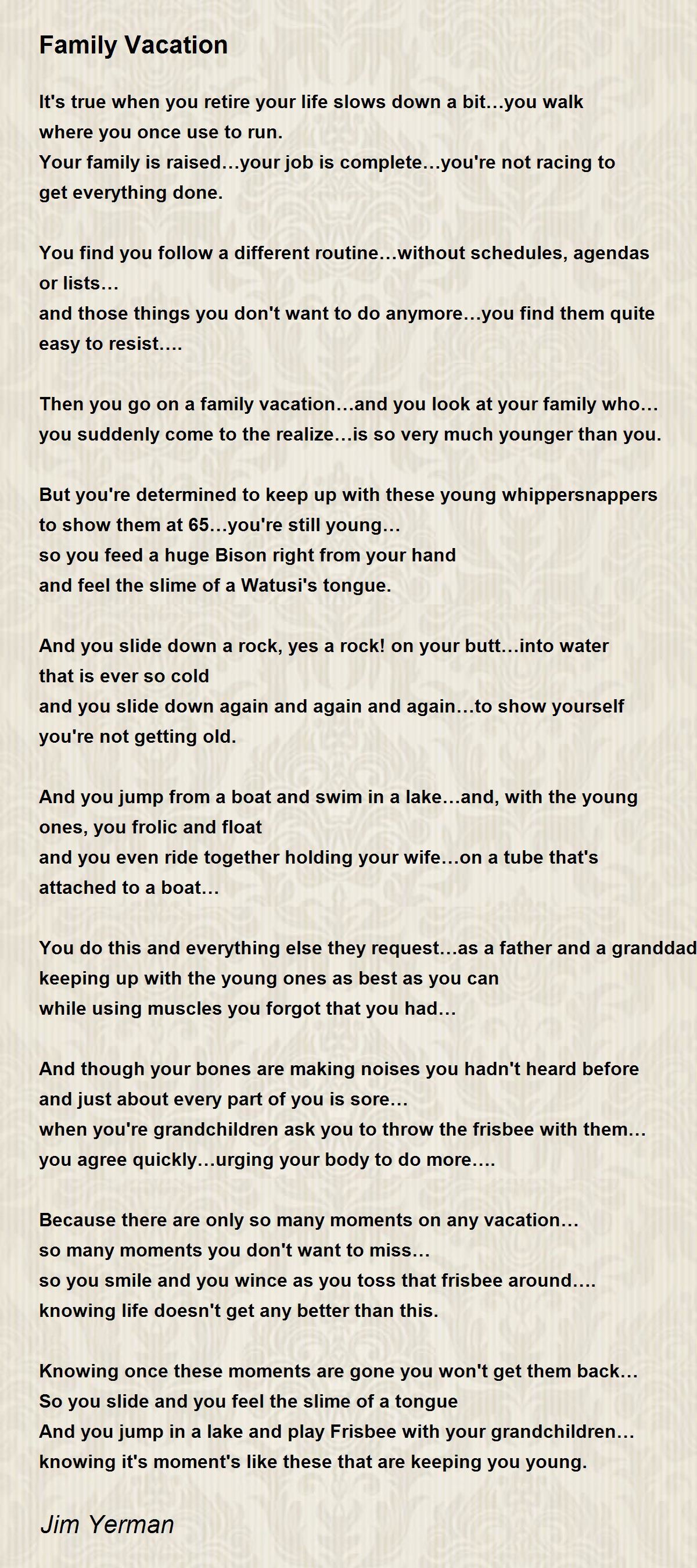 Family Vacation Poem By Jim Yerman - Poem Hunter