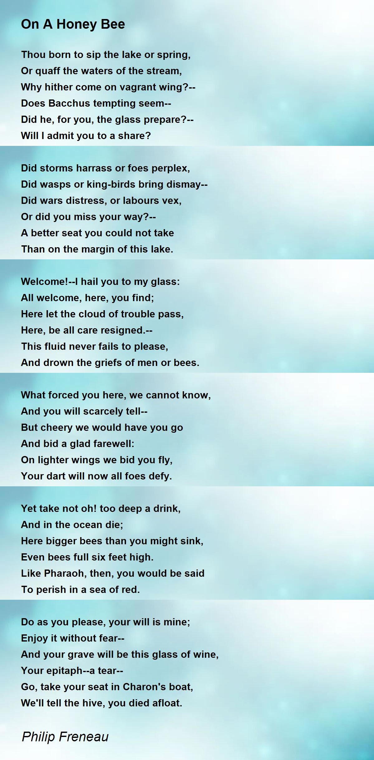 On A Honey Bee Poem By Philip Freneau - Poem Hunter Comments